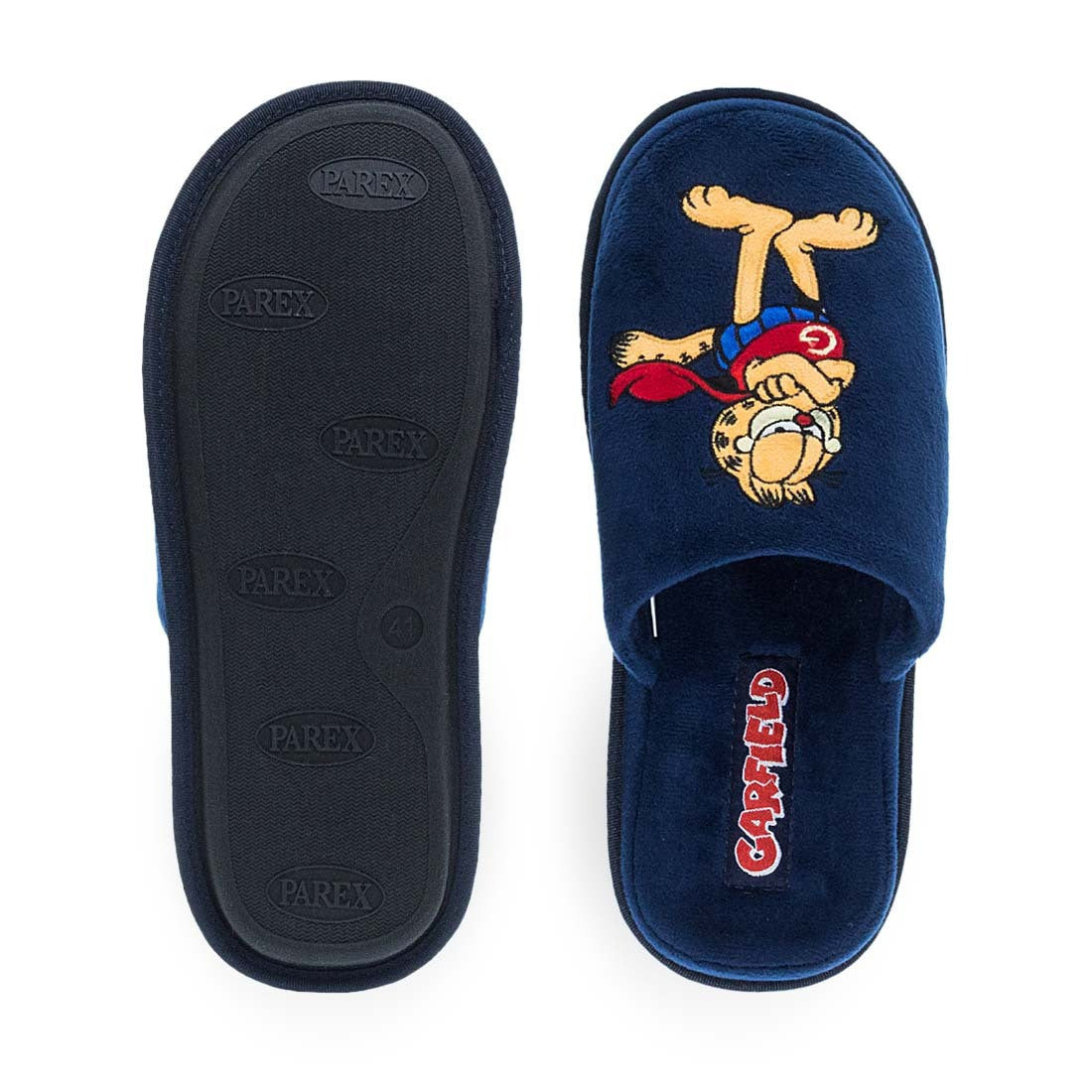 Ανδρικές υφασμάτινες παντόφλες με υπέροχη φιγούρα του GARFIELD που θα σας φτιάξει τη διάθεση. Αναπαυτικές και ζεστές παντόφλες σπιτιού,θα ξεκουράσουν τα κουρασμένα πόδια σας μετά από μια δύσκολη ημέρα. Ανετες παντόφλες Parex που χαρακτηρίζονται από υψηλή ποιότητα.