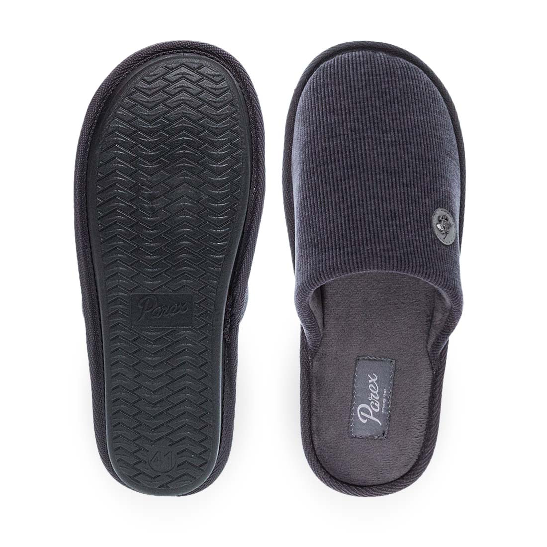 Ανδρικές παντόφλες σπιτιού Parex. Ανδρικές παντόφλες Parex από κοτλέ ύφασμα, με διακριτικό μεταλλικό λογότυπο. Κλασικό σχέδιο και απαλή εσωτερική επένδυση.