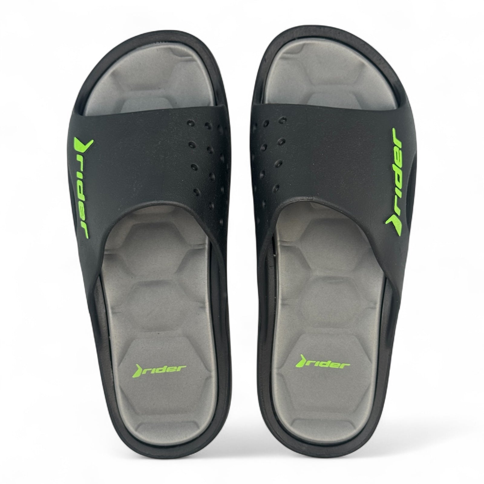 Ανδρικές σαγιονάρες από τη βραζιλιάνικη εταιρεία Rider. Μαλακό πάτημα που ανακουφίζει τα κουρασμένα πόδια σας και εύκαμπτη αντιολισθητική σόλα.