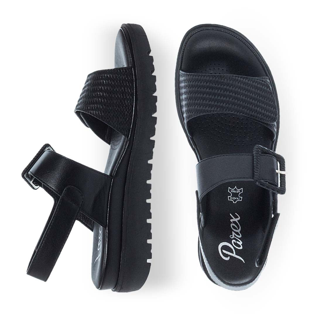 Γυναικεία ανατομικά πέδιλα Parex από συνθετικό δέρμα υψηλής ποιότητας. Κλείσιμο με αυτοκολλητα velcro. Διαθέτουν εντυπωσιακή διακοσμητική αγκράφα. Τα συγκεκριμένα πέδιλα έχουν δερμάτινο εσωτερικό πάτο και εξαιρετικά σταθερή σόλα.