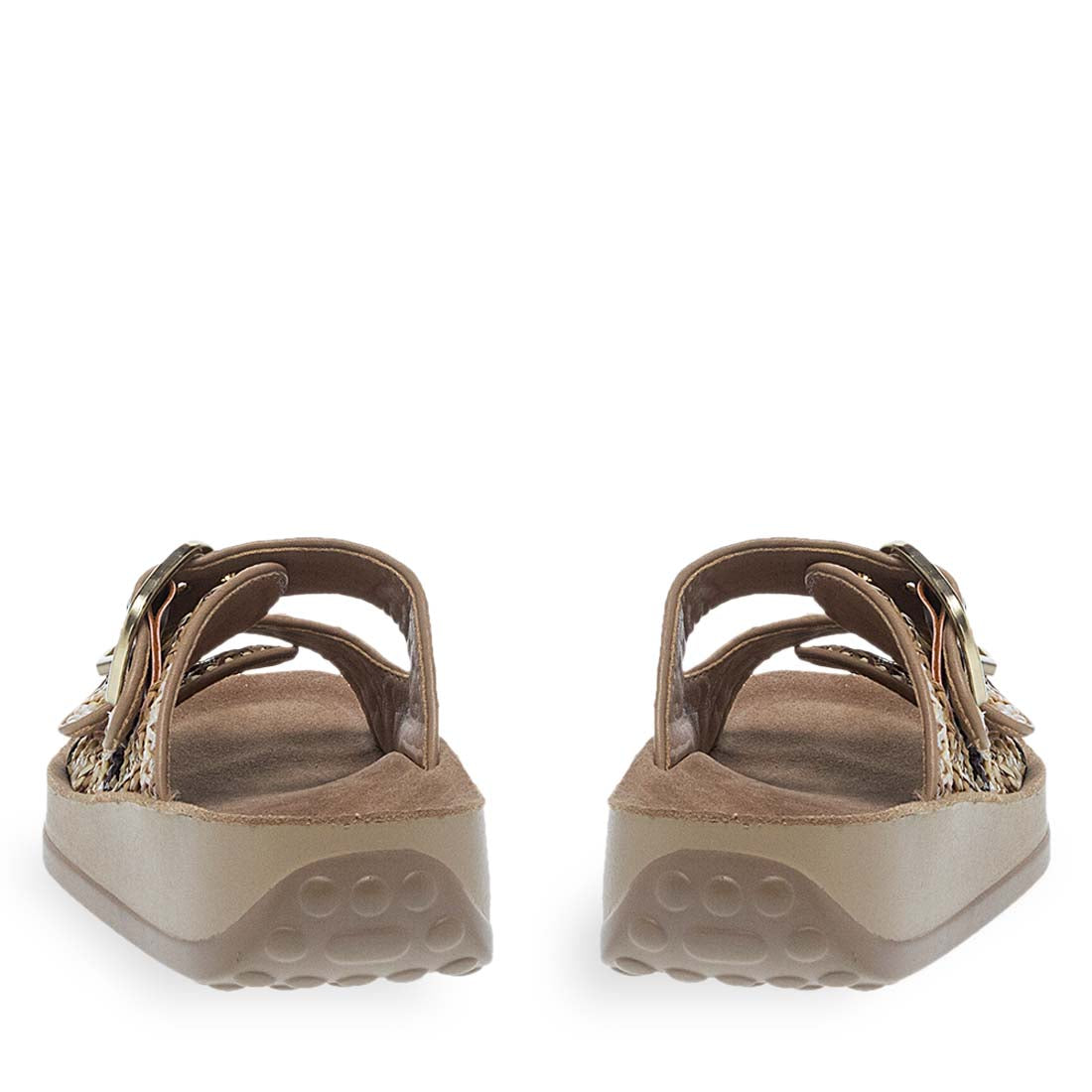 Μοντέρνες γυναικείες ανατομικές παντόφλες θα που θα ανανεώσουν τα καλοκαιρινά σας look. Διπλή φάσα με αγκράφα ώστε να εφαρμόζει τέλεια σε κάθε τύπο ποδιού. Εξαιρετικά μαλακός πάτος που θα ανακουφίσει τα πέλματα σας.