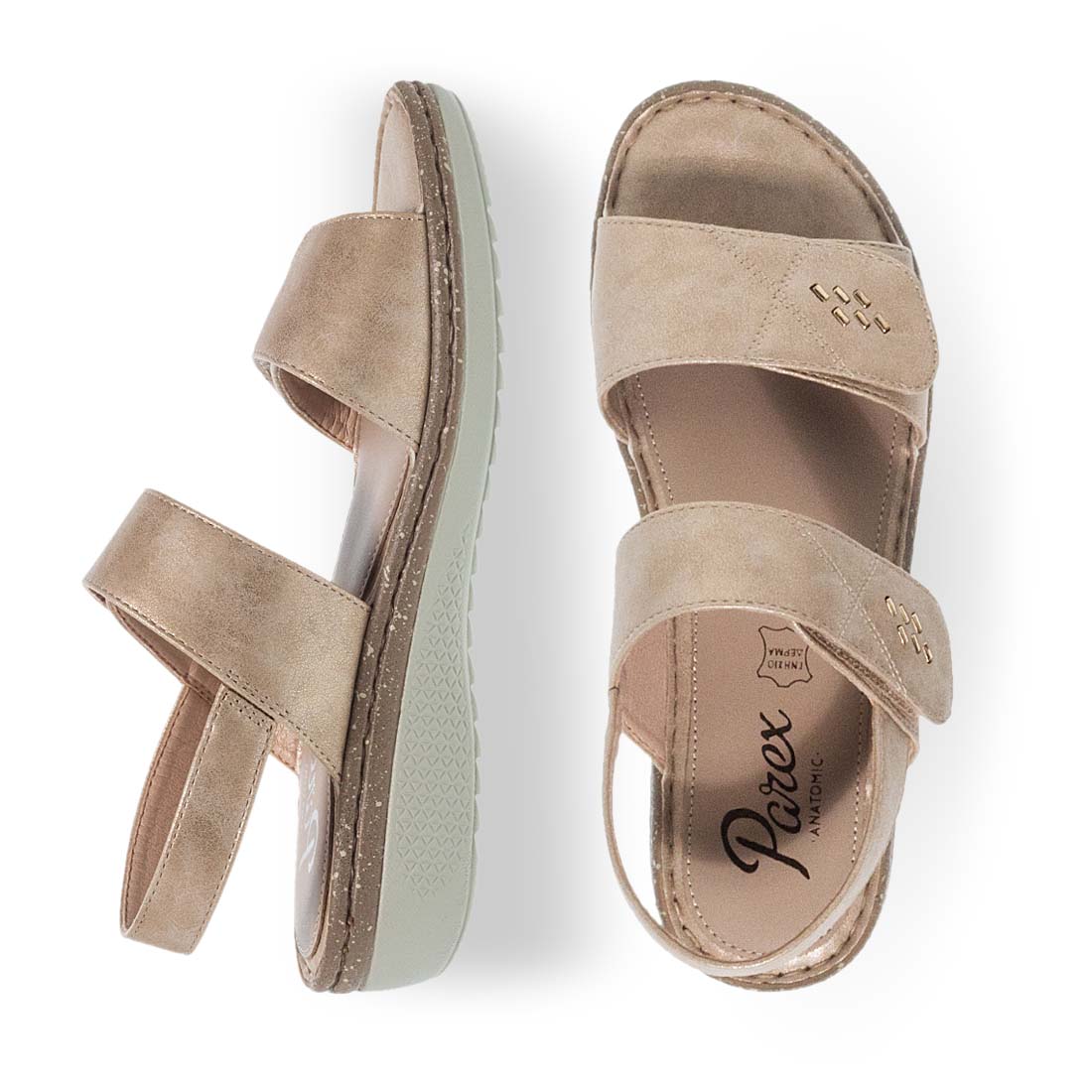 Διαχρονικά πέδιλα Parex για να σας χαρίσουν άνετα βήματα. Αναπαυτικός δερμάτινος πάτος ανατομικών προδιαγραφών. Αυτά τα γυναικεία πέδιλα διαθέτουν εξωτερικές ραφές και κλείνουν και στα δυο λουράκια με αυτοκόλλητο velcro. Φορέστε τα όλη μέρα χωρίς να νιώθετε πόνο.