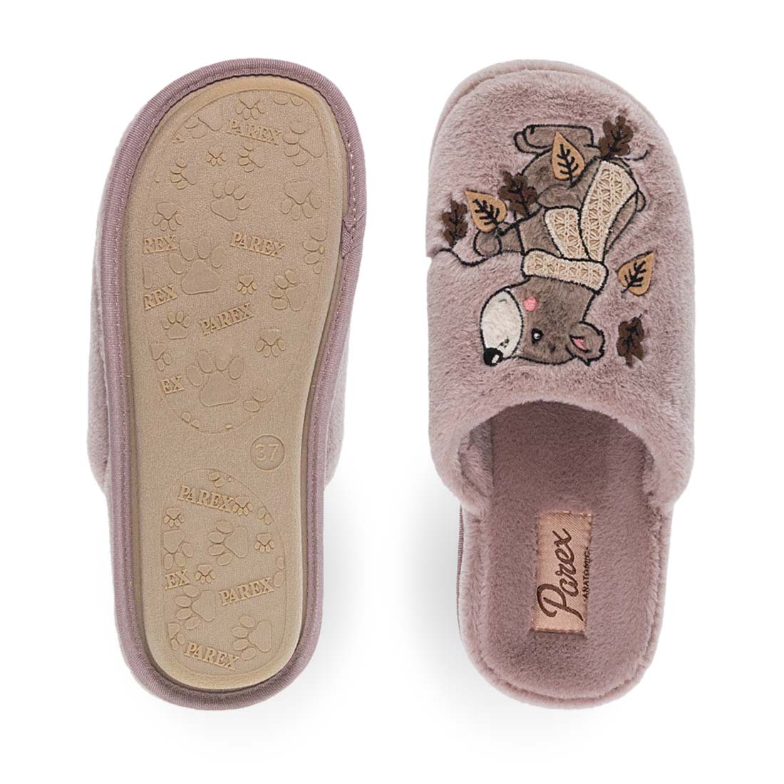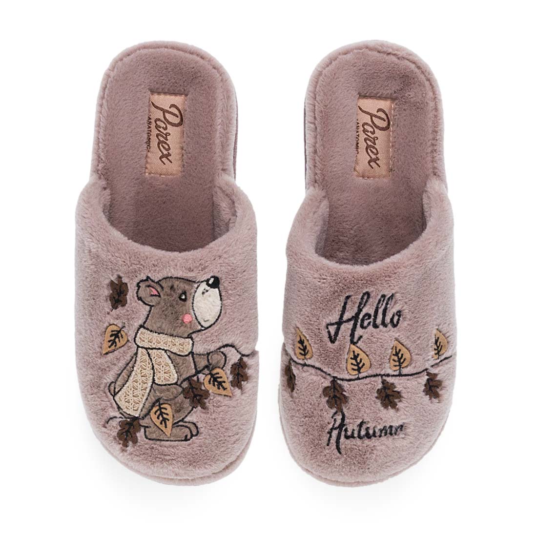 Μαλακές και ζεστές παντόφλες σπιτιού Parex. Αυτές οι γυναικείες παντόφλες σπιτιού θα διατηρήσουν τα πόδια σας ξεκούραστα. Είναι σχεδιασμένες από μαλακό ύφασμα και έχουν σχέδιο αρκουδάκι. Διαθέσιμες σε 2 χρώματα με εξαιρετικά μαλακό πάτο και σταθερή σόλα. Δυνατότητα πλυσίματος στο πλυντήριο στους 30°C