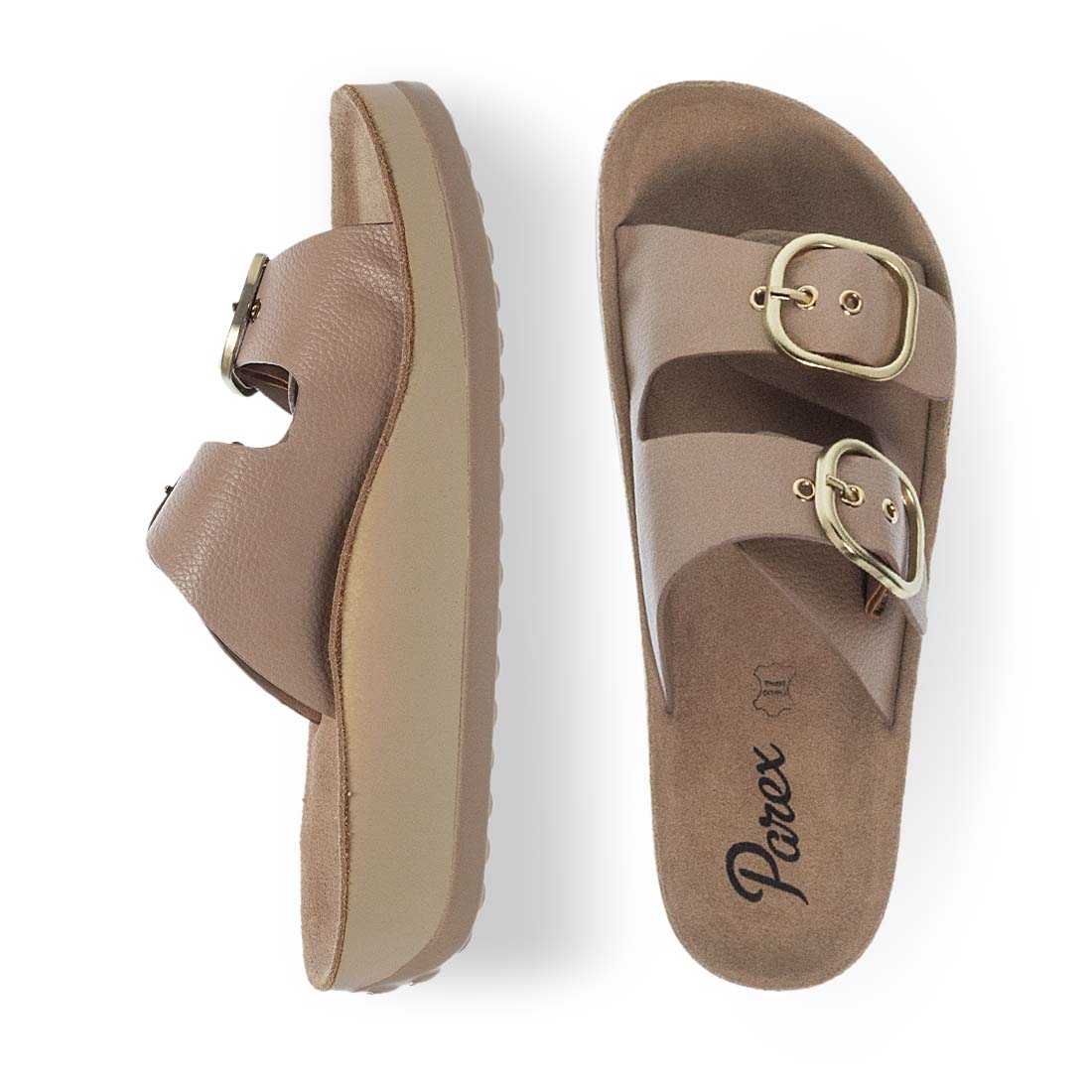 Γυναικεία σανδάλια Parex με αναπαυτικό πάτημα και διπλή φάσα με αγκράφες ώστε να προσαρμόζονται σε κάθε τύπο ποδιού. Είναι κατασκευασμένα από συνθετικό δέρμα άριστης ποιότητας. Δερμάτινος εσωτερικός πάτος. Αναβαθμίστε το καθημερινό σας ντύσιμο με αυτά τα απλά και άνετα γυναικεία σανδάλια.