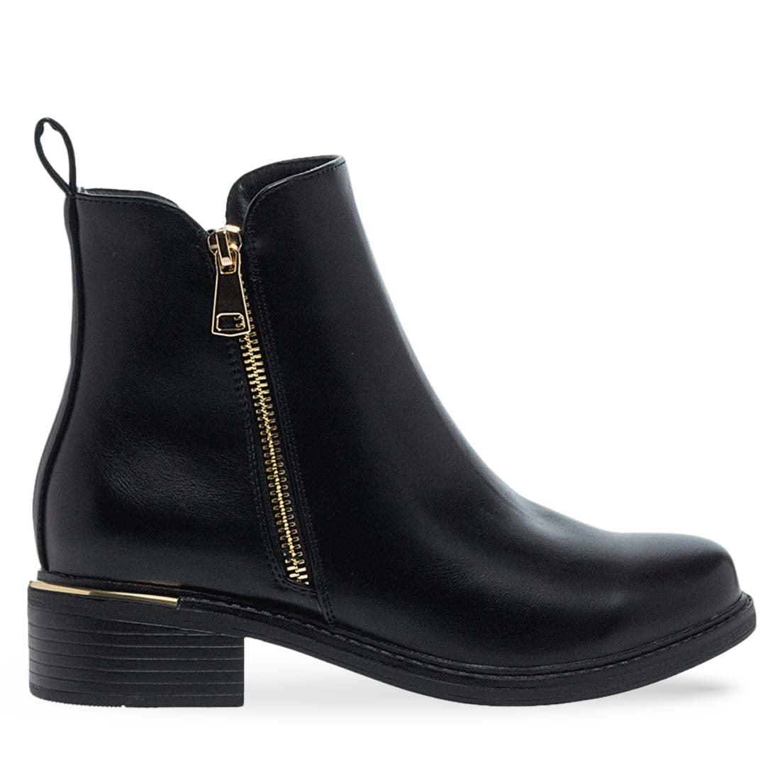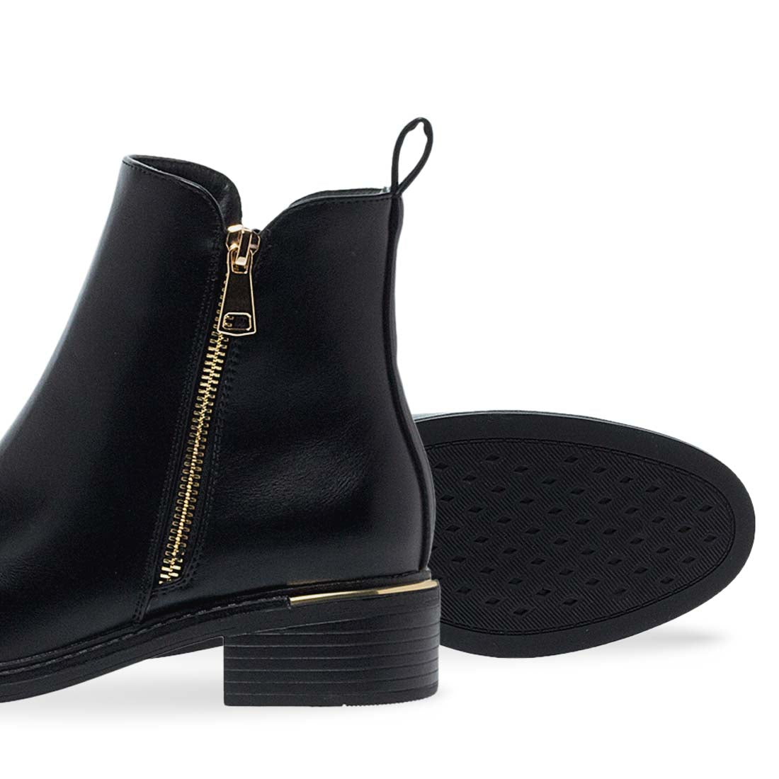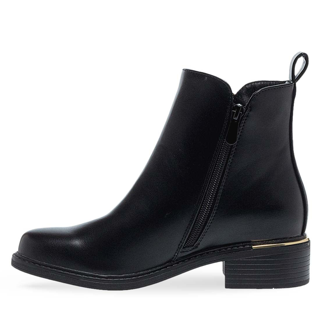 Γυναικεία μποτάκια Parex. Γυναικείο μαύρο μποτάκι Parex με χαμηλό τακούνι και χρυσή λεπτομέρεια στη σόλα. Μοντέρνο και άνετο για καθημερινή χρήση.