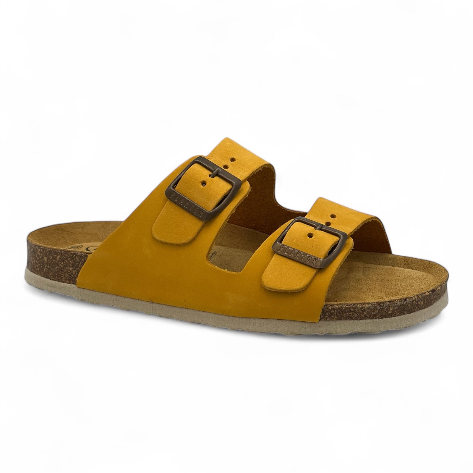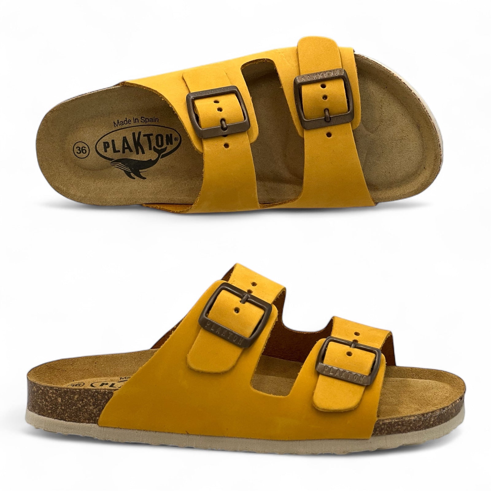 Γυναικείες Ανατομικές Δερμάτινες Παντόφλες PLAKTON 180010 Κίτρινες