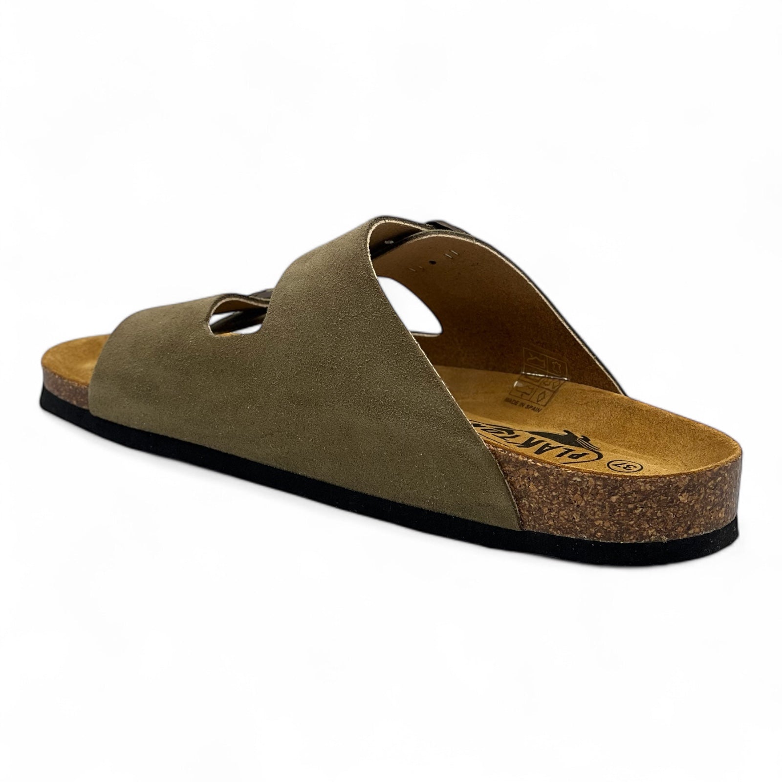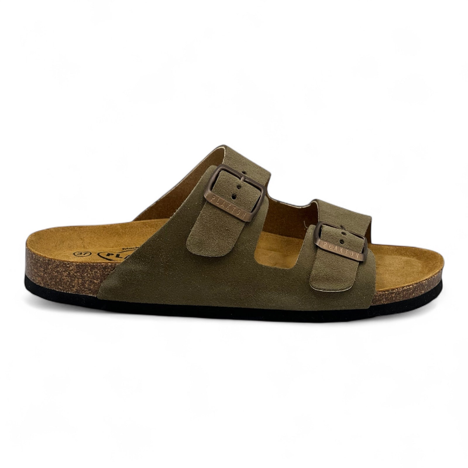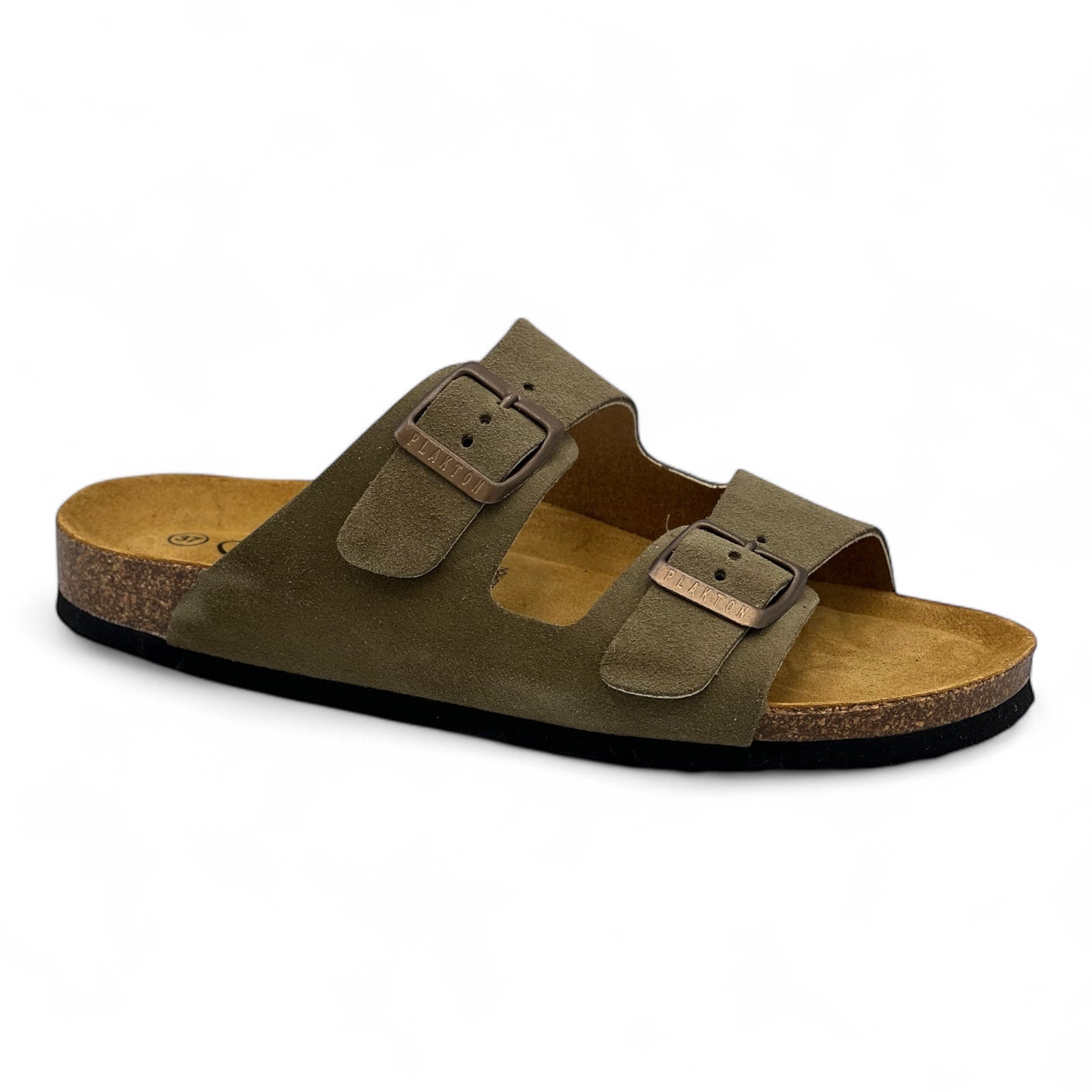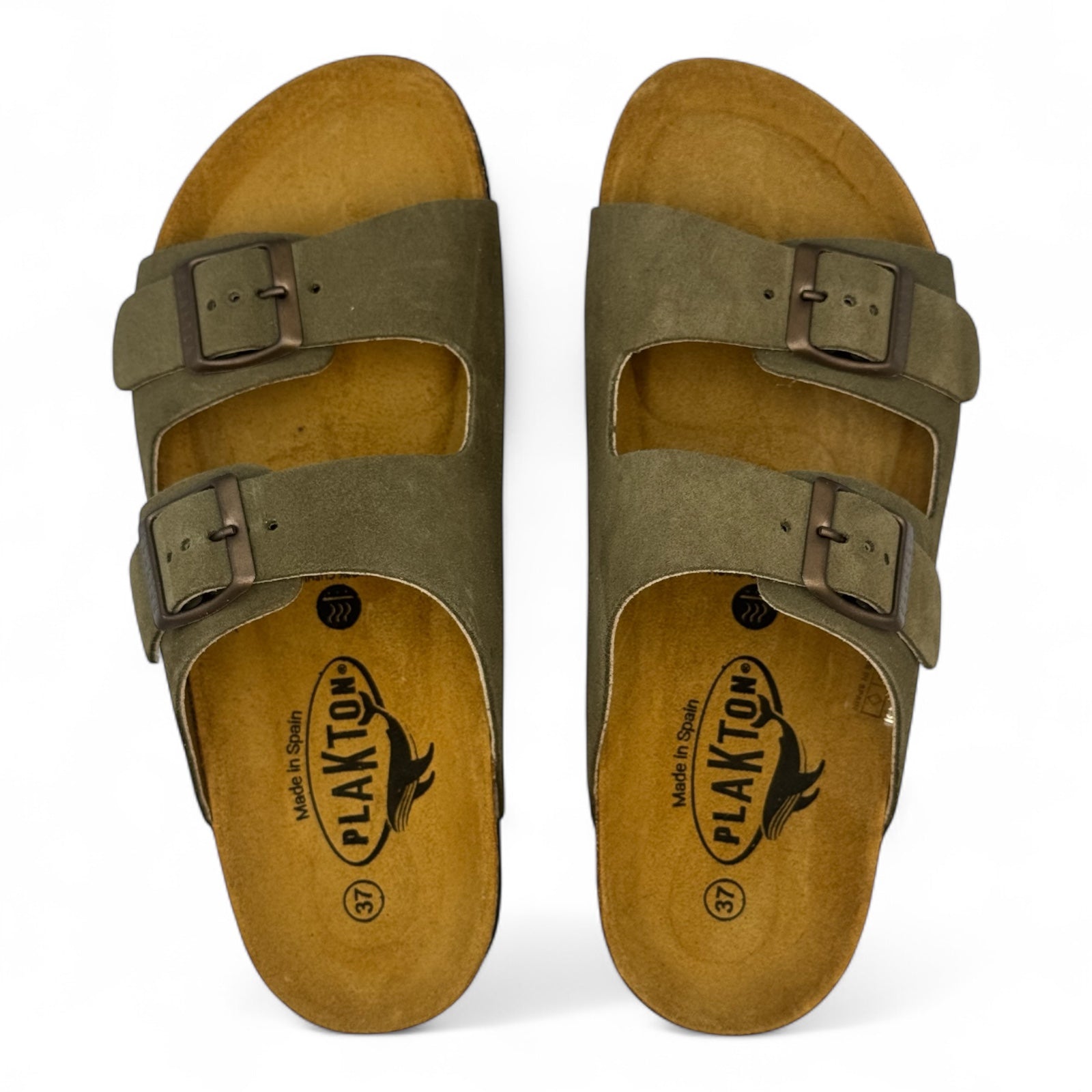 Γυναικείες Ανατομικές Δερμάτινες Παντόφλες Plakton 180010 Χακί