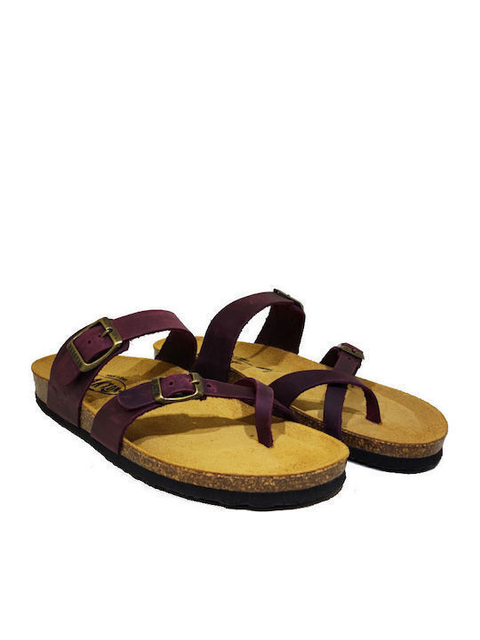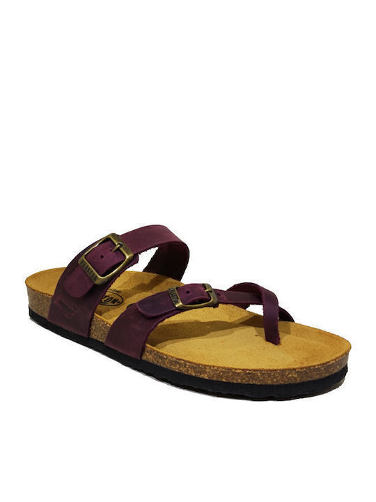 Γυναικείες Ανατομικές Δερμάτινες Παντόφλες Plakton 181032 Μωβ
