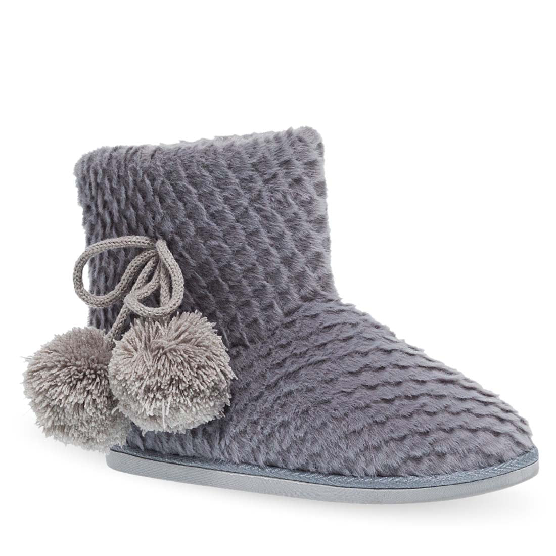 Γυναικείες παντόφλες σπιτιού Parex, σε στυλ μποτάκι με κορδόνι και pom pon . Διαθέτουν απαλό και ζεστό ύφασμα για ξεκούραστα βήματα. Χνουδωτές και ζεστές που θα λατρέψετε!